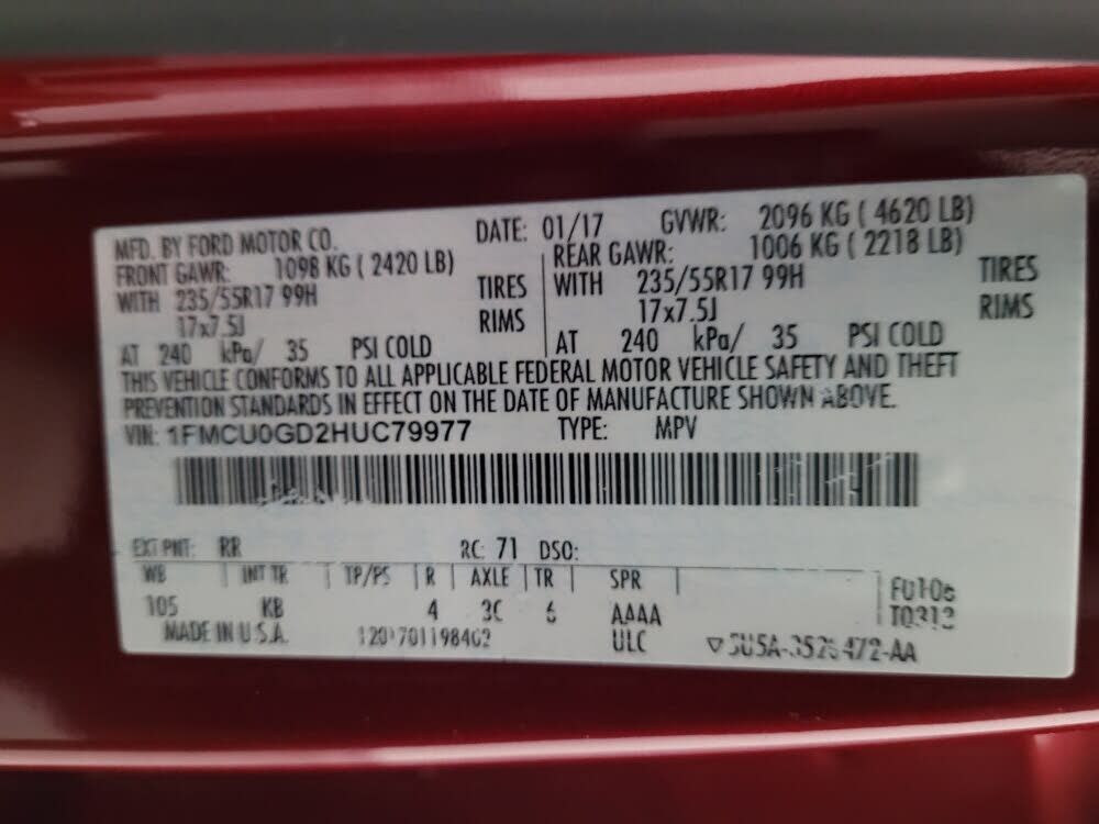 VIN 1FMCU0GD2HUC79977 may have been