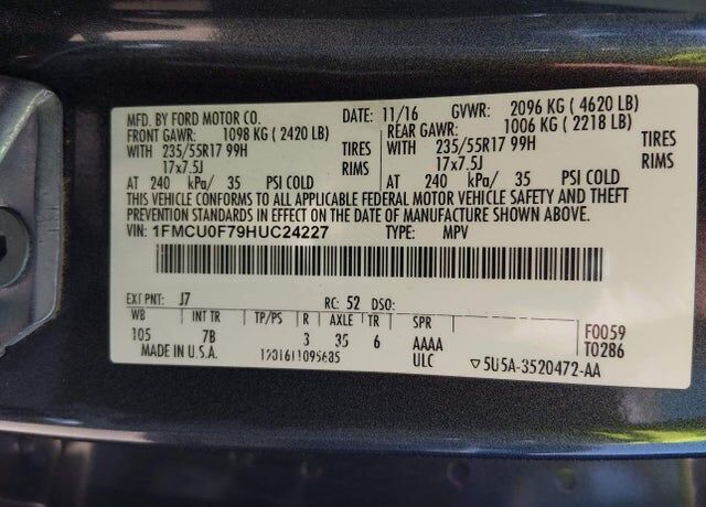 VIN 1FMCU0F79HUC24227 may have been