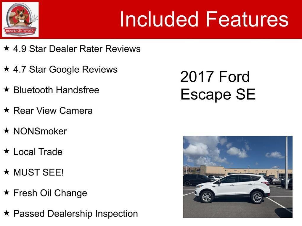 Discover the perfect blend of style, technology, and performance with this exceptional 2017 Ford Escape SE. Boasting a sleek white exterior and a well-appointed interior, this SUV is ready to elevate your driving experience. - 4.7 Star Google Review...