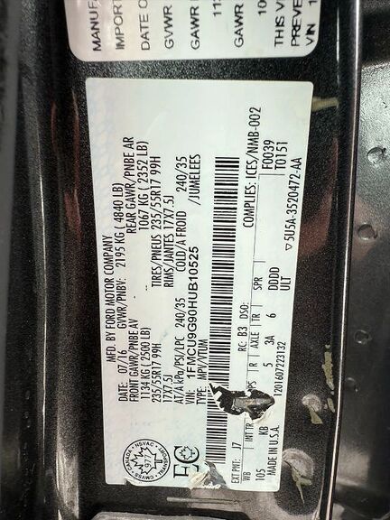 VIN 1FMCU9G90HUB10525 may have been