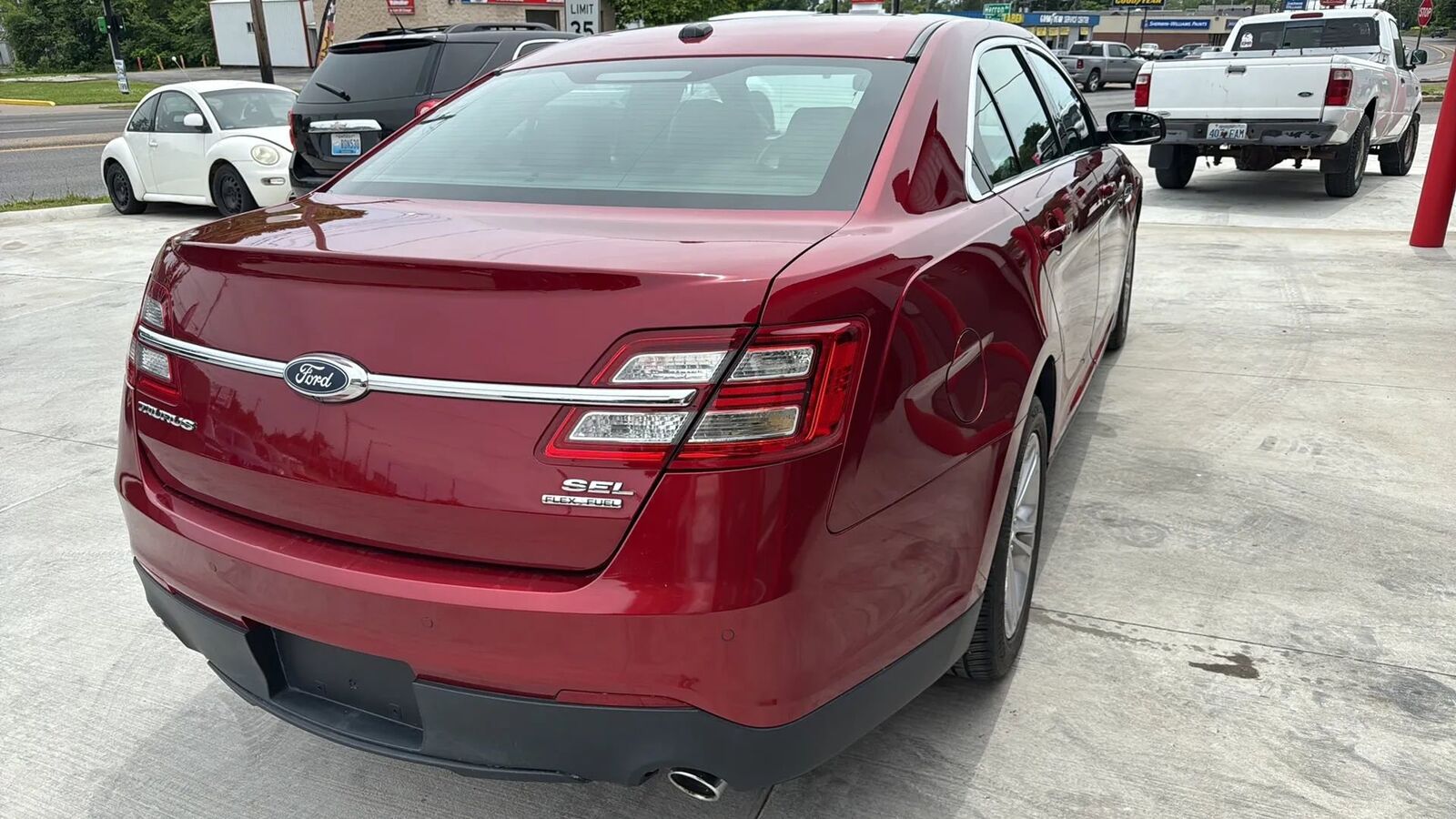 2017 Ford Taurus SEL Sedan V6, 3.5L 74,541 Miles. Red exterior, alloy wheels. Black leather interior, heated seats, Taurus weather rubber floor mats, back up camera, hands free communication, CD/FM/AM/Sirius media center, ice cold air.