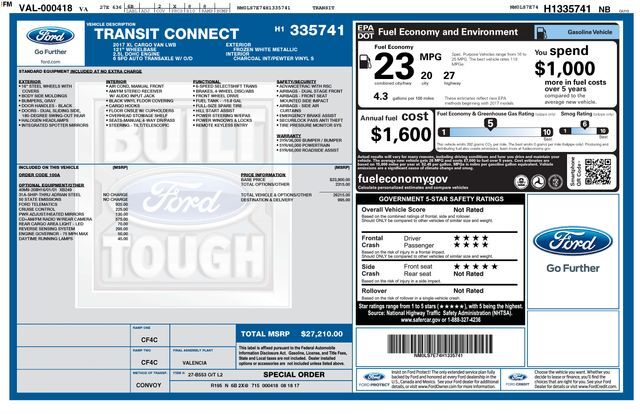 Recent Arrival! 2017 Ford Transit Connect XL Duratec 2.5L I4 6-Speed Automatic with Select-Shift FWD 4D Cargo Van Frozen White For better peace of mind all our used vehicles have a 127-point inspection and come with a 5-day return, 30-day exchange...