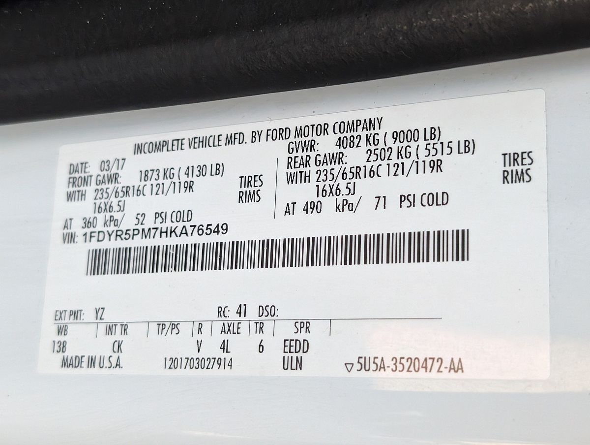 VIN 1FDYR5PM7HKA76549 may have been