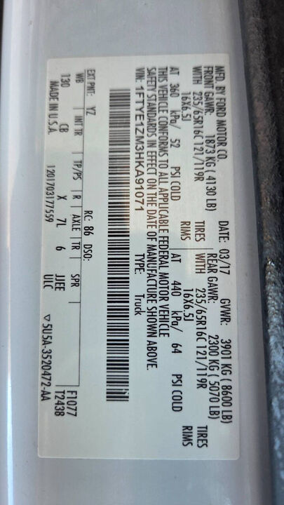 VIN 1FTYE1ZM3HKA91071 may have been