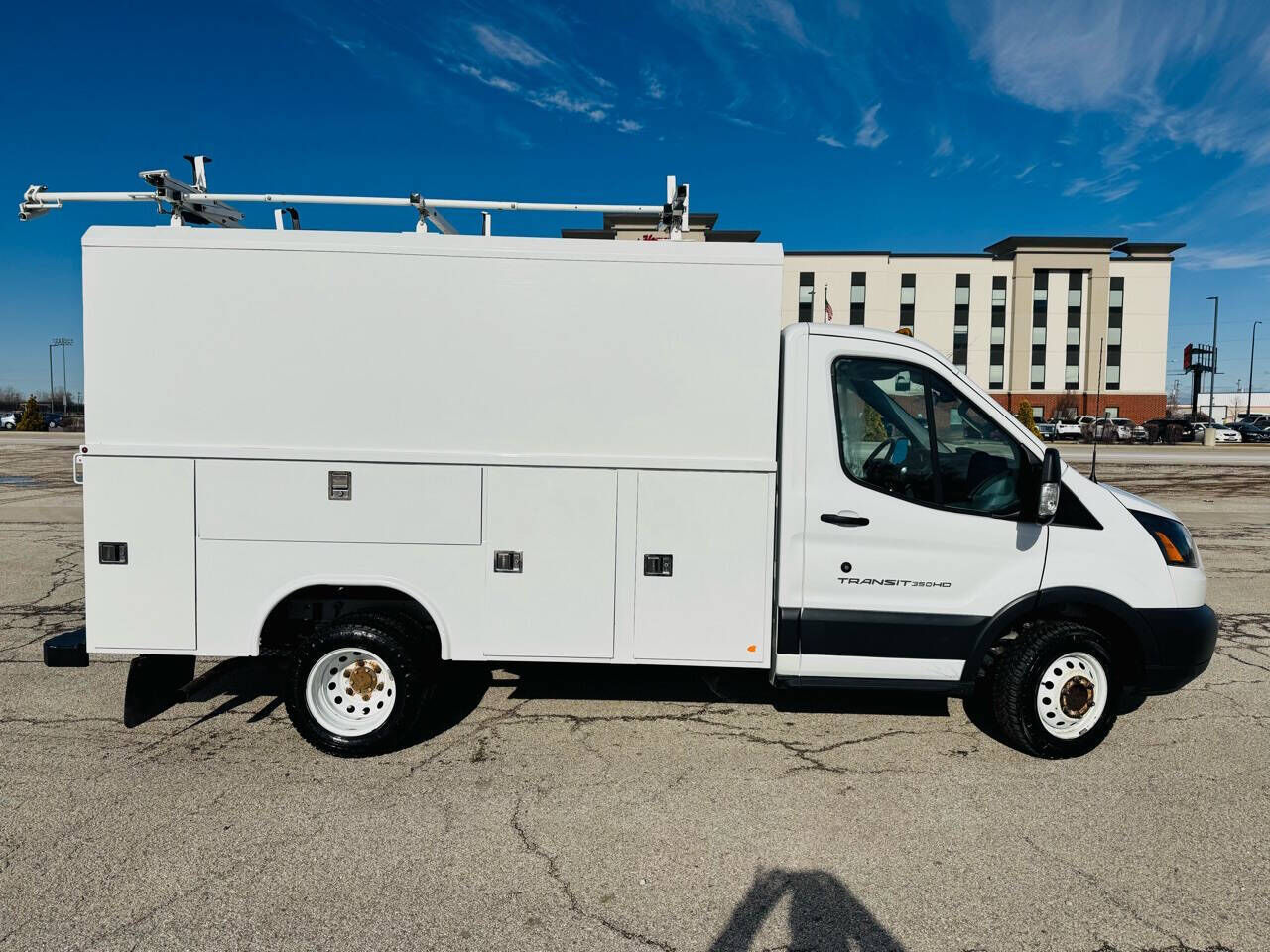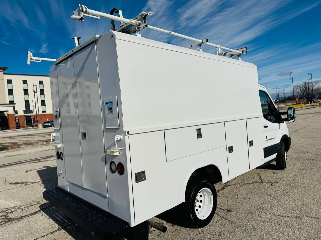2017 Ford Transit 350 HD Reading High Roof Light Weight CVS72 Aluminium Enclosed Service Body, One Owner (MI), Clean Title, Accident-Free CarFax, Oxford White on Charcoal Cloth, 202,190 MIles, 3.7L V6, 6-Speed Automatic, RWD, Dual Rear Wheels, New Tr...