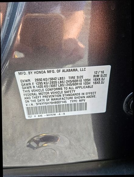 VIN 5FNYF6H70HB007145 may have been