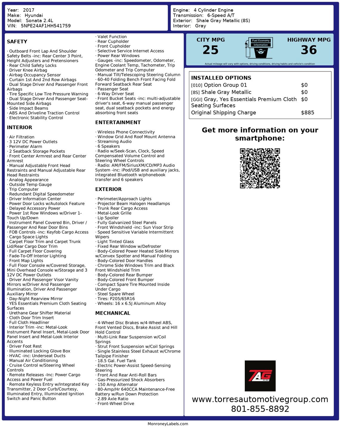 The 2017 Hyundai Sonata 2.4L is a sophisticated blend of style and performance, showcasing a refined Shale Gray Metallic exterior that is designed to captivate. This mid-sized sedan effortlessly combines aesthetic appeal with practical functionality,...