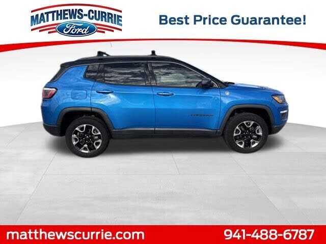 This 2017 Jeep New Compass Trailhawk in Laser Blue Pearlcoat features: 22/30 City/Highway MPG Awards: * 2017 KBB.com 10 Most Awarded Brands Reviews: * Appealing baby-Grand Cherokee styling; optional flip-down tailgate speakers make tailgating...