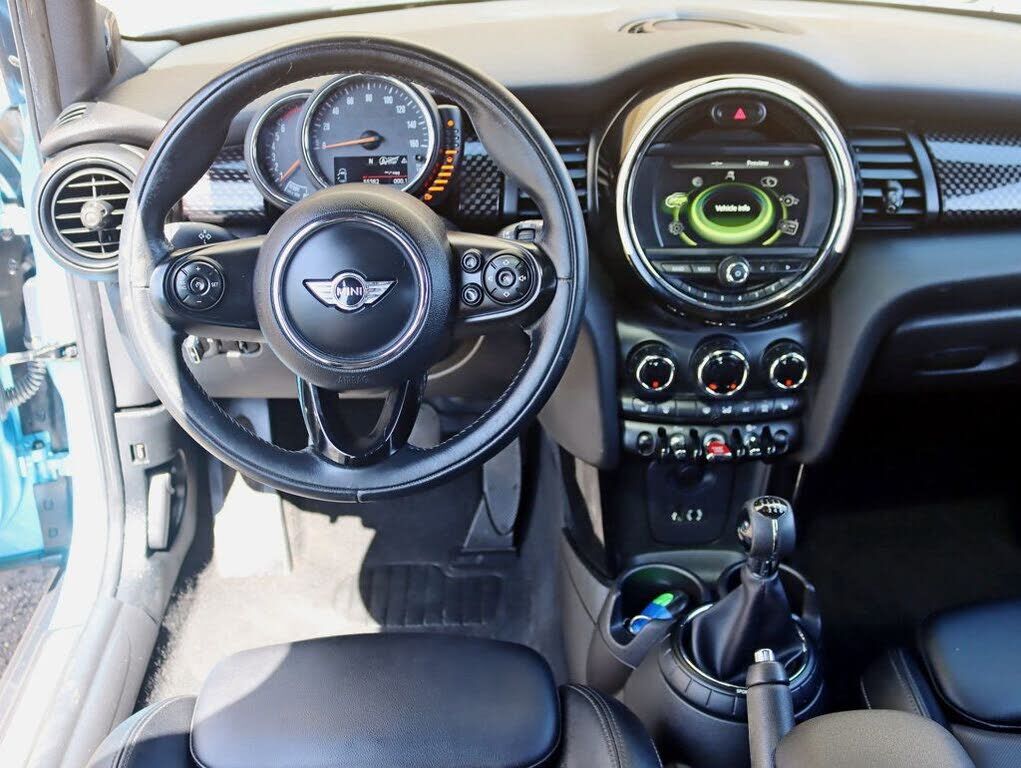 This 2017 MINI Cooper S Hardtop 4 Door 4dr features a 2.0L 4 CYLINDER 4cyl Gasoline engine. It is equipped with a 6 Speed Manual transmission. The vehicle is Electric Blue Metallic with a Carbon Black Leather interior. It is offered As-Is, extended w...