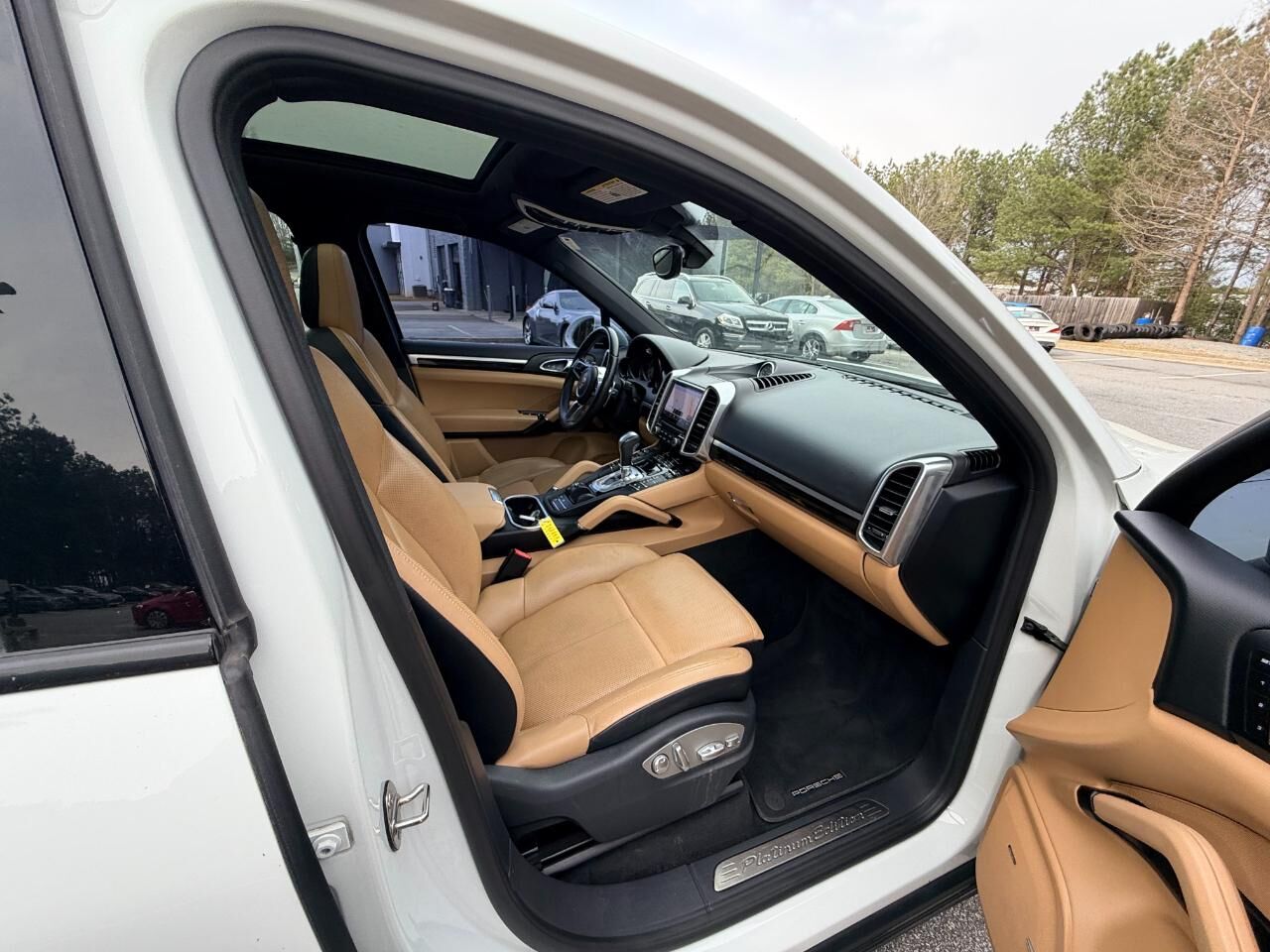 2017 Porsche Cayenne Platinum Edition, White on Luxor Beige/Black Leather, Automatic Transmission, AWD, Premium Package, Porsche Entry & Drive, Lane Change Assist, riding on 21 Inch Cayenne SportEdition Wheels, Panoramic Roof System, 14-Way Power Sea...