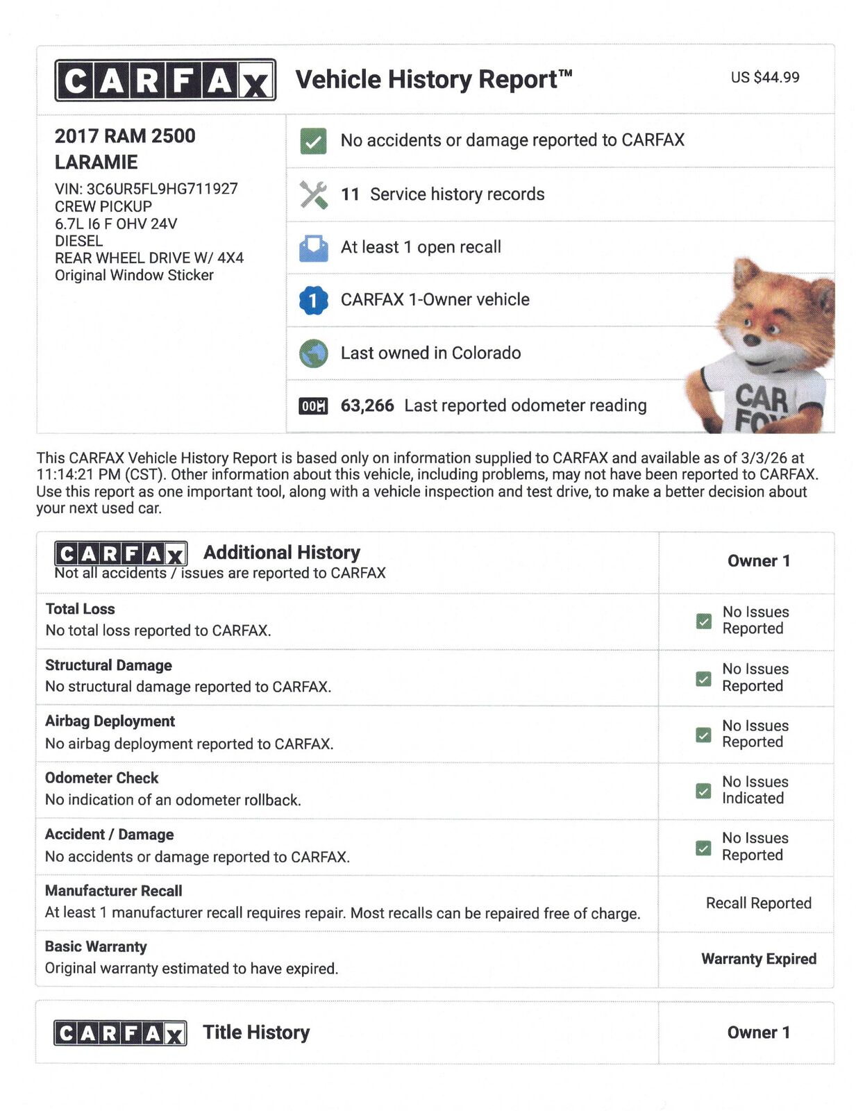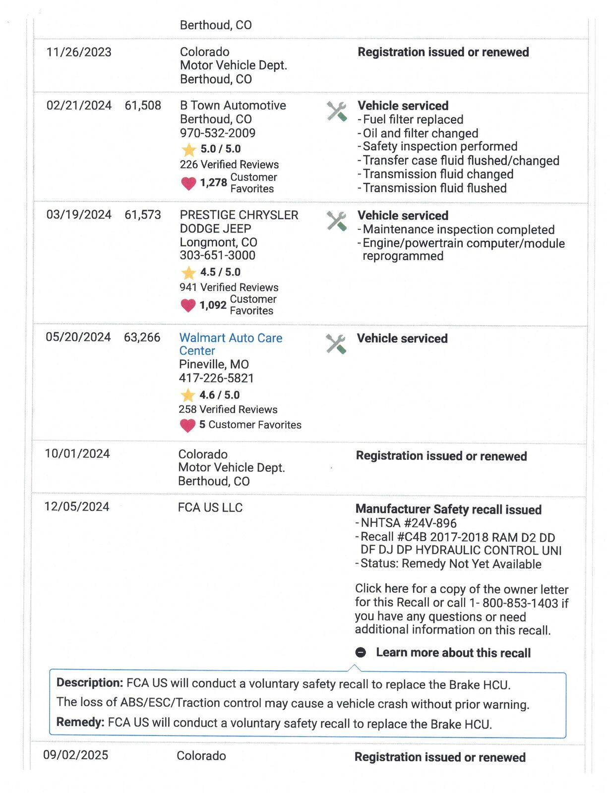 VIN 3C6UR5FL9HG711927 may have been recalled. Check full report for more information
