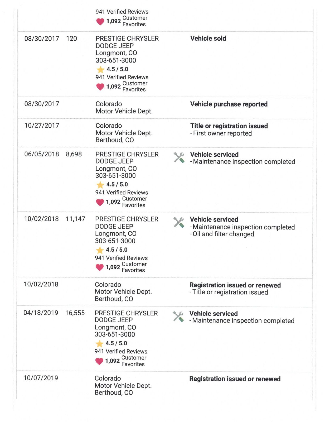 Vehicle History Report
