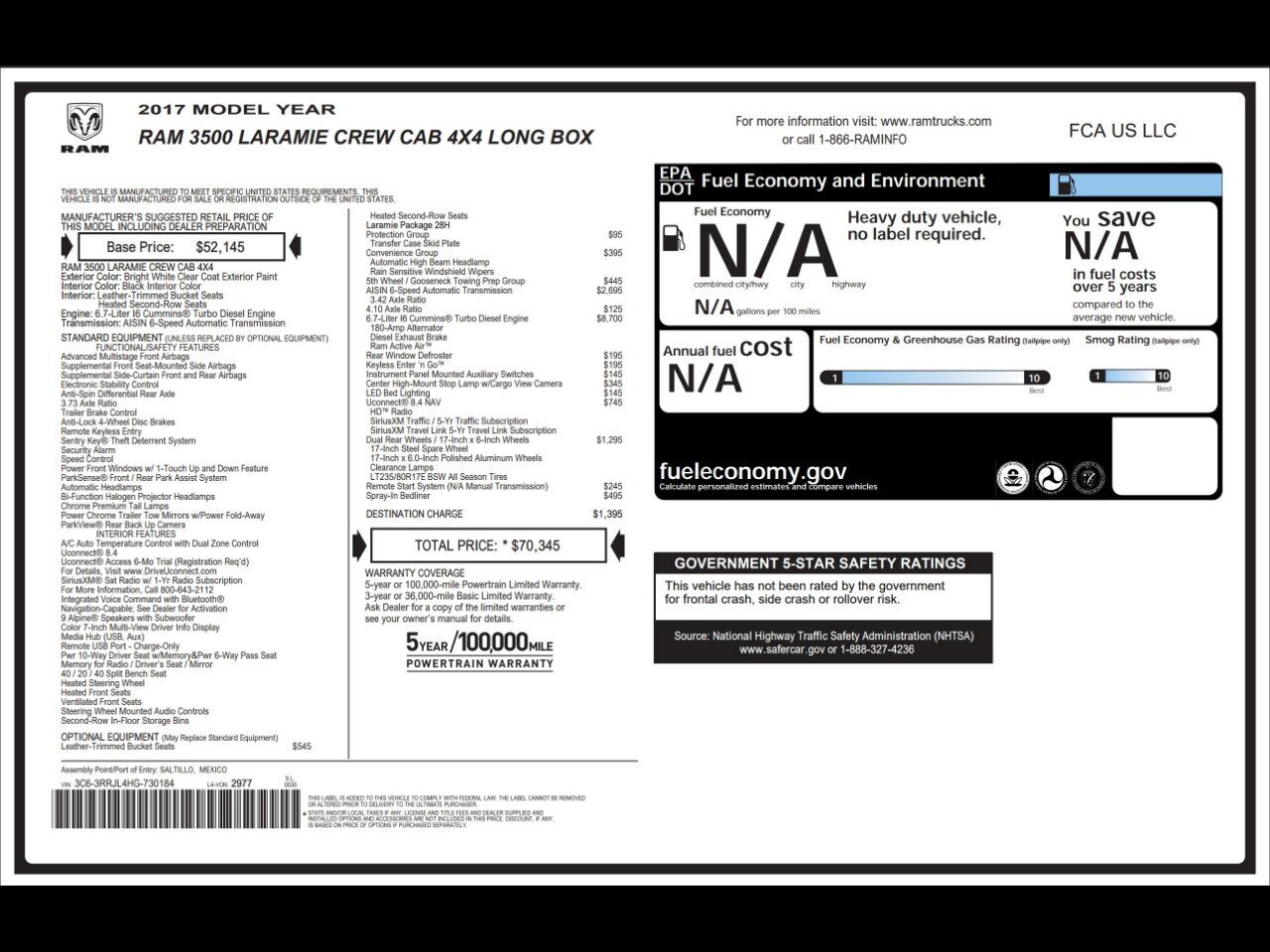 VIN 3C63RRJL4HG730184 may have been