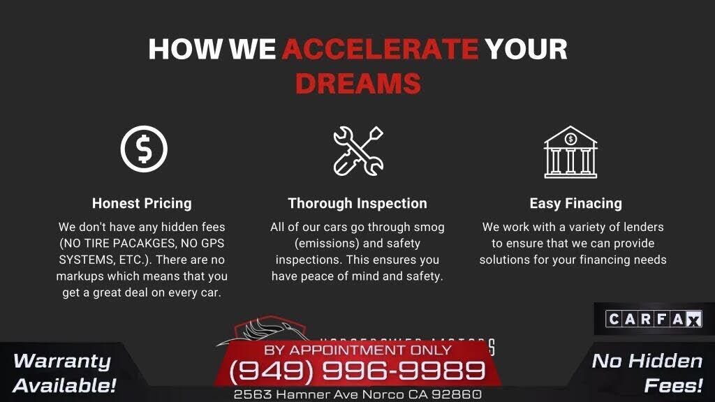 To be more confident in your used car purchase and get more information about the auto, including its accident history, insurance records, odometer readings history and other important details, we recommend you get a vehicle history report for the car prior to buying it.