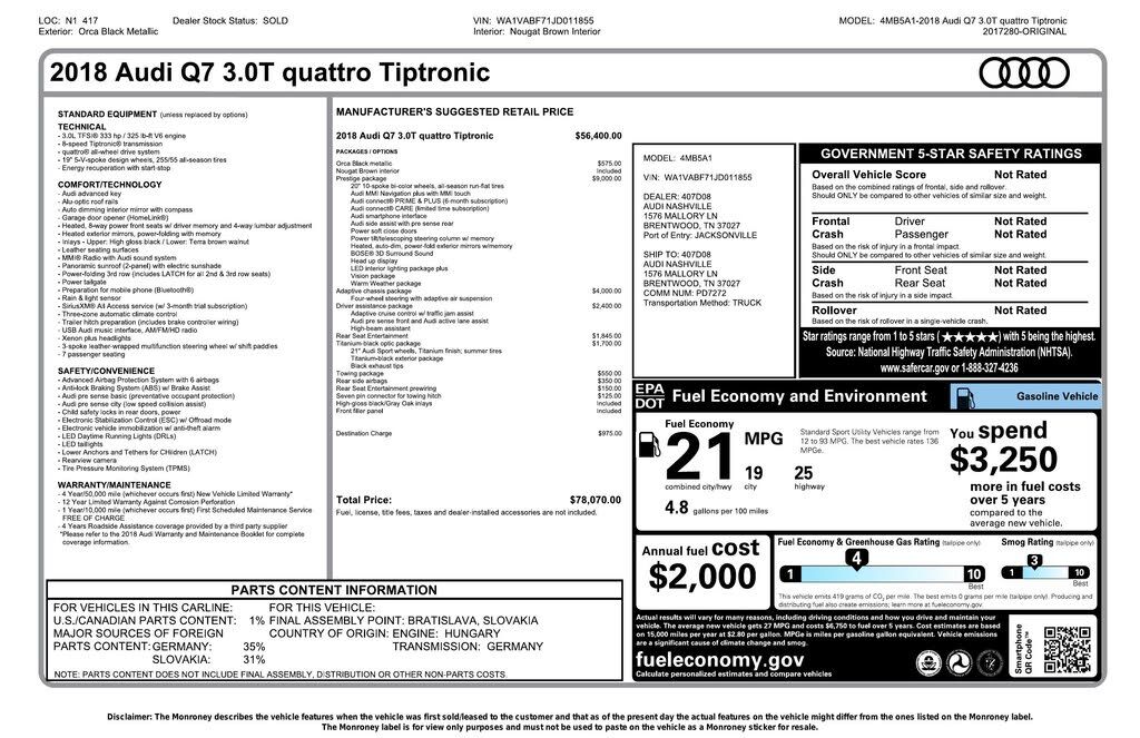 VIN WA1VABF71JD011855 may have been