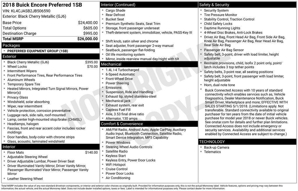 Discover the perfect balance of style, performance, and practicality with this 2018 Buick Encore Preferred. This stunning Red SUV is equipped with an ECOTEC 1.4L I4 SMPI DOHC Turbocharged VVT engine, delivering an impressive 25 city/33 highway MPG....