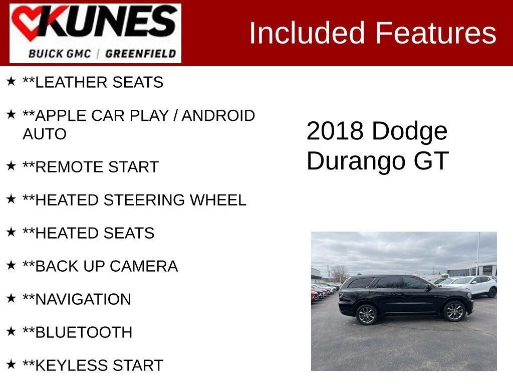 2018 Dodge Durango GT DB Black Crystal Clearcoat AWD 3.6L V6 24V VVTRecent Arrival! Second row bucket seats Navigation system Rear backup camera and rear parking sensors Heated front seats Heated steering wheel Leather-trimmed bucket seats Pre...