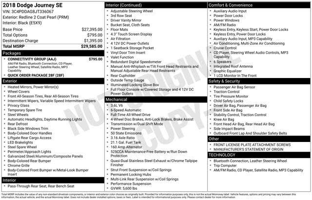 2018 Dodge Journey SE AWD. * All vehicles are one of each and are subject to prior sale. All Pre-Owned or certified vehicles are used. A negotiable documentary service fee of up to $200 may be added to the sale price or capitalized cost. All financ...