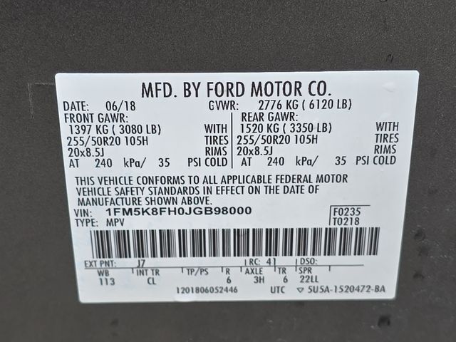 Vehicle Records & Info. Your report VIN 1FM5K8FH0JGB98000 includes:
