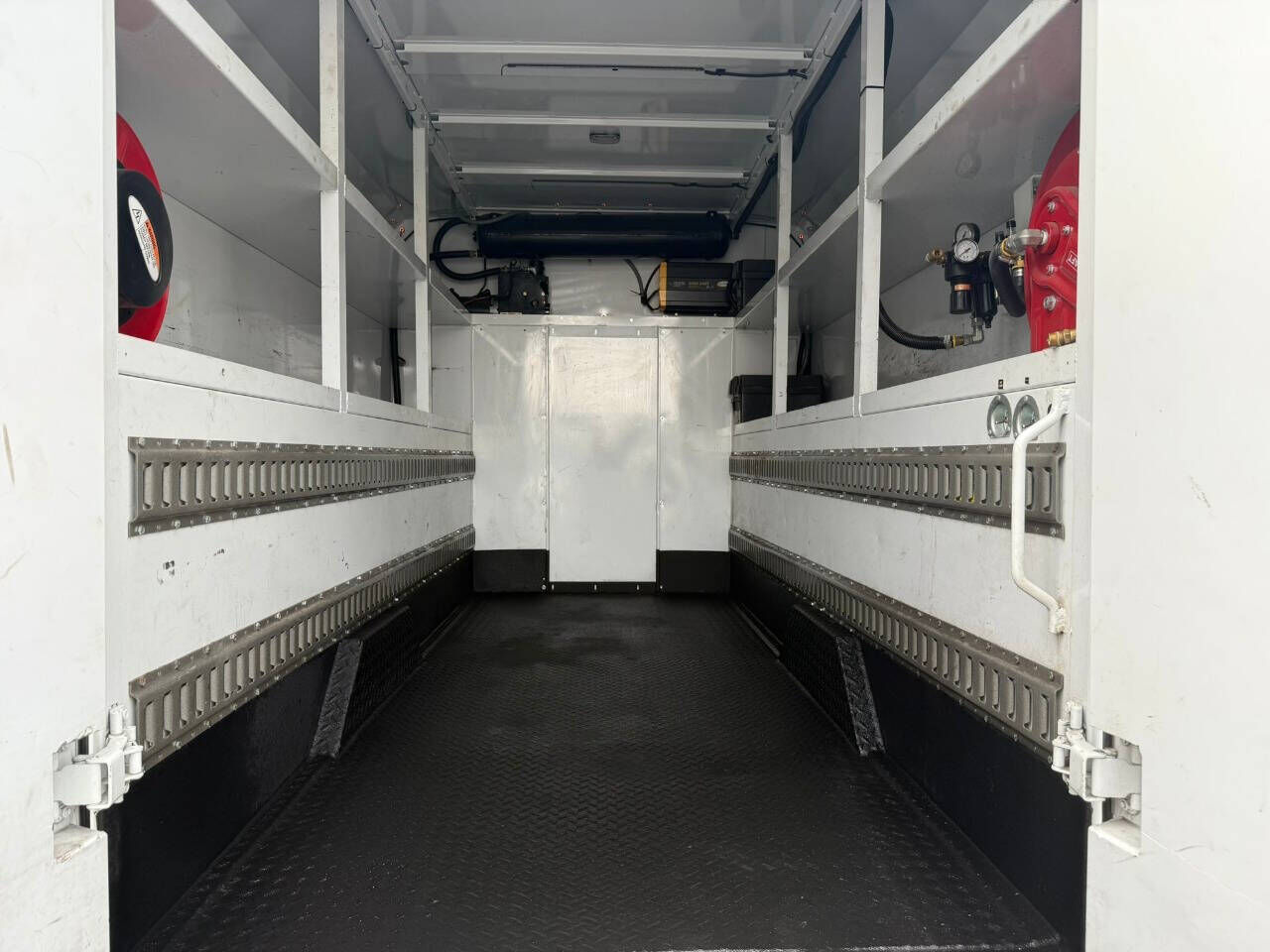 This is a 2018 Ford Transit 350 High Roof KUV w/Air Compressor Setup, Air Hose Reel, Power Inverter, and Power Cable Reel. It is equipped with a 3.7L V6 Gas Engine, Automatic Transmission, Air Conditioning, Cruise Control, Power Windows, Locks & Mirr...