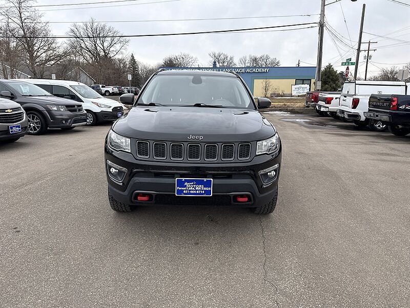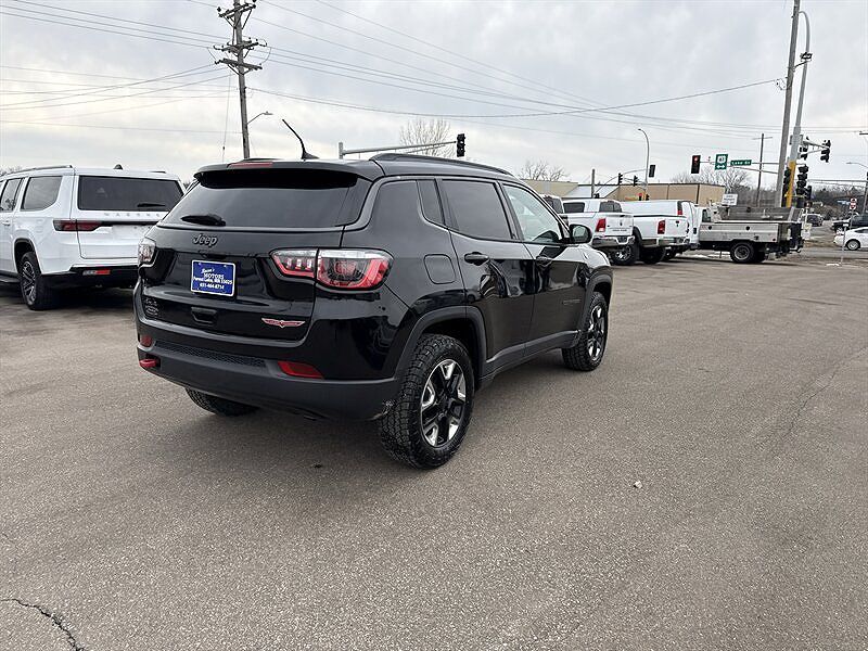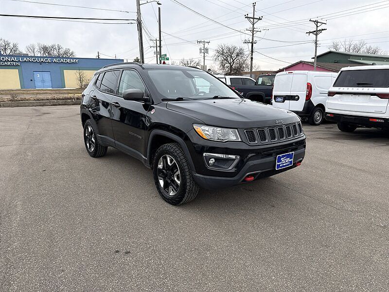 2018 Jeep Compass Trailhawk Diamond Black Crystal Pearl Coat exterior with Black/Ruby Red leather-trimmed interior. This Trailhawk is powered by the Tigershark 2.4L I4 PZEV engine producing 180 hp and 175 lb-ft of torque, and is EPA-rated at 22 MPG...