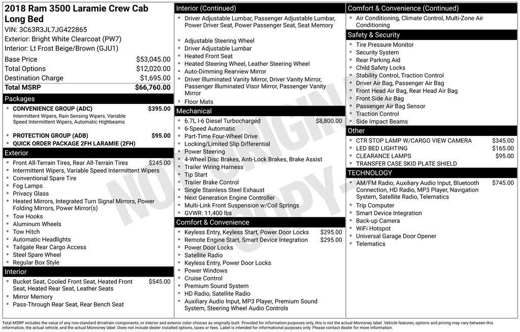 4WD 6-Speed Automatic Cummins 6.7L I6 Turbodiesel Come see why Keller Bros has been in business since 1921. All of our vehicles have been fully serviced, through a complete interior and exterior detail and are priced competitively. If you are comin...