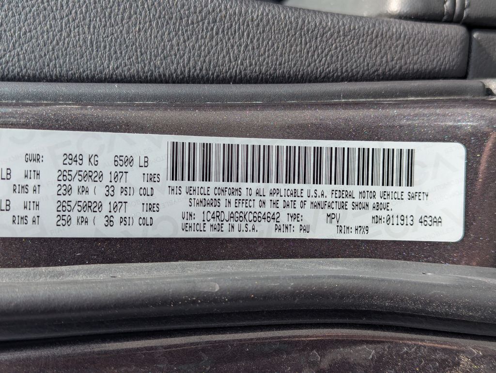 VIN 1C4RDJAG6KC664642 may have been