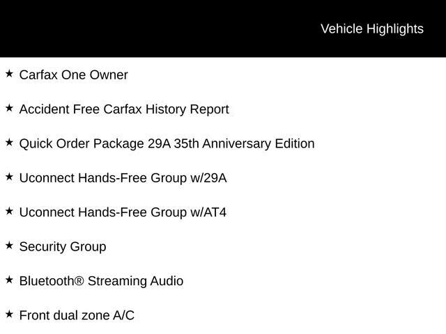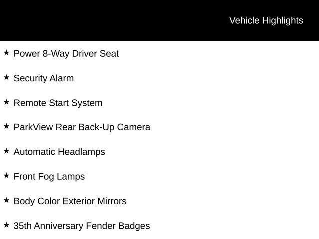 Quick Order Package 29A 35th Anniversary Edition,3.16 Axle Ratio,17" x 6.5" Steel Wheels,17" x 6.5" Aluminum Wheels,Cloth Low-Back Bucket Seats,Premium Cloth Bucket Seats,2nd Row Bench w/Rear Stow 'N Go 60/40,2nd Row Stow 'N Go Bucket Seats,Touring S...