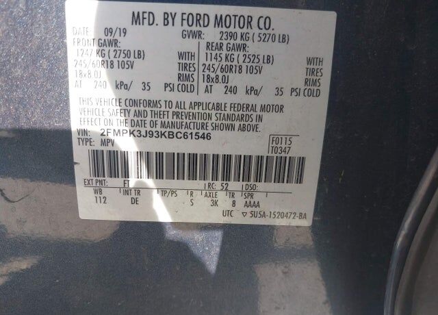VIN 2FMPK3J93KBC61546 may have been