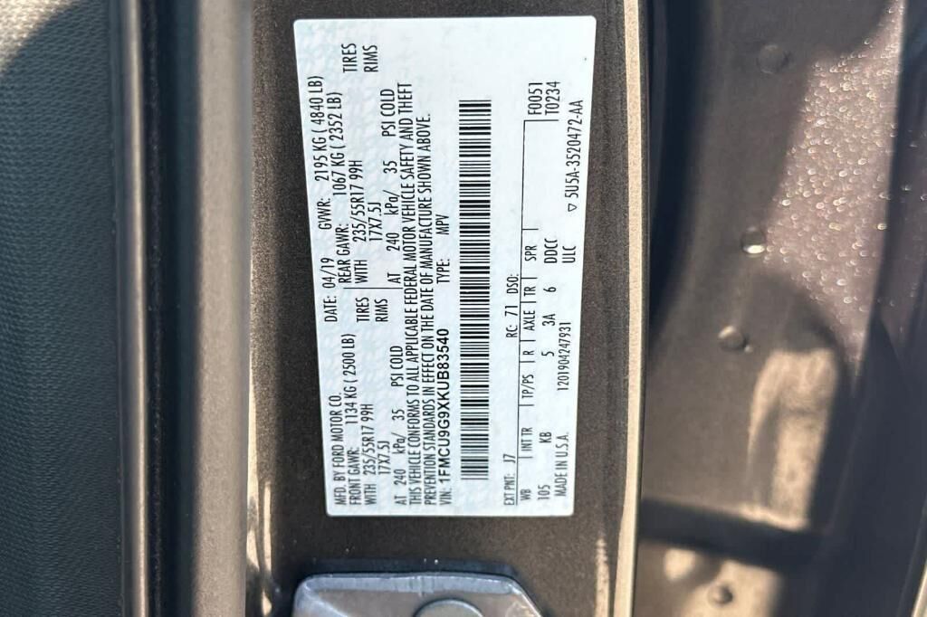 VIN 1FMCU9G9XKUB83540 may have been