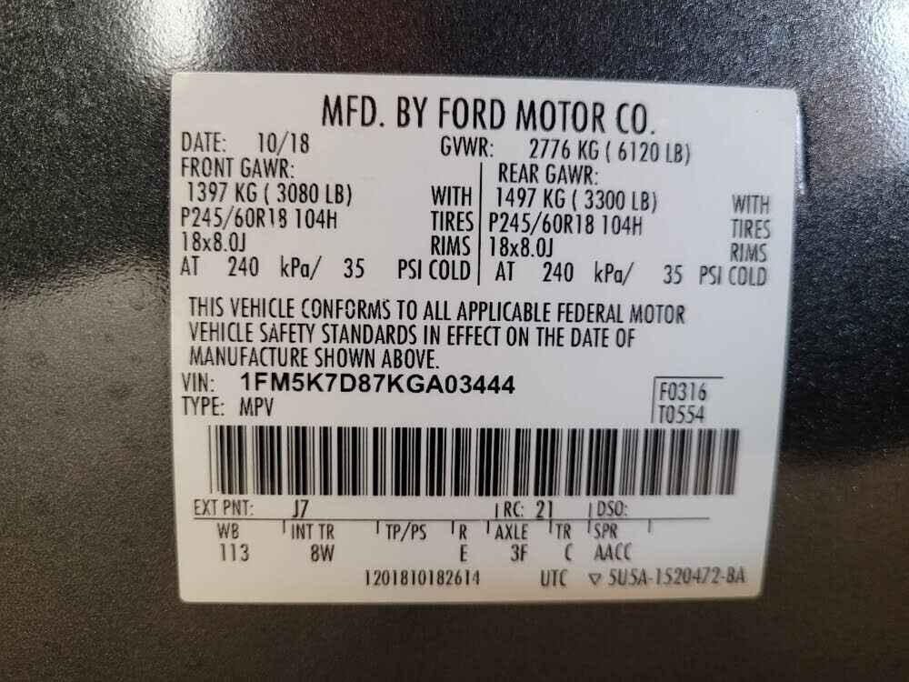 VIN 1FM5K7D87KGA03444 may have been