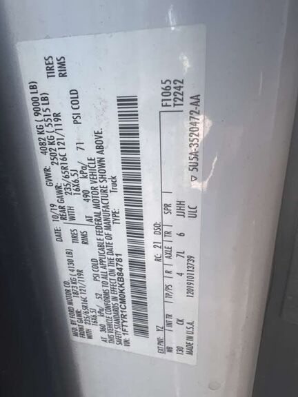 VIN 1FTYR1CM0KKB84781 may have been
