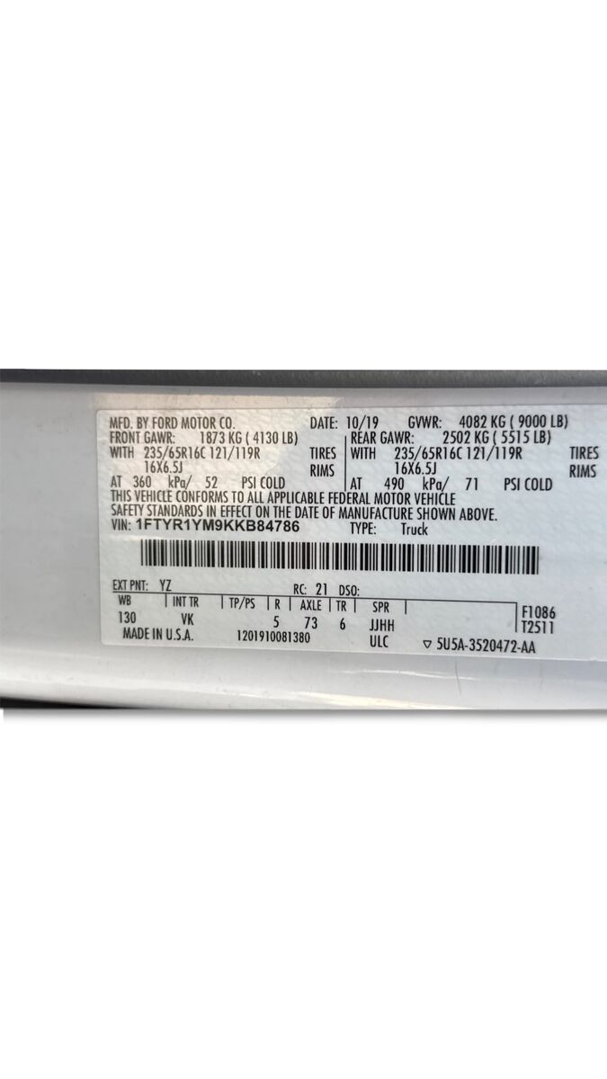 VIN 1FTYR1YM9KKB84786 may have been