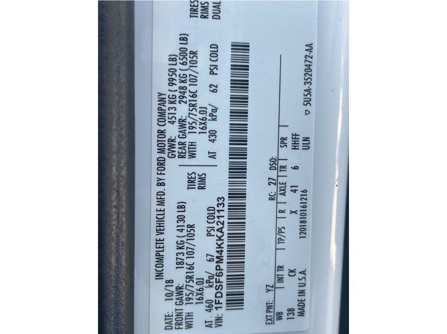 VIN 1FDSF6PM4KKA21133 may have been