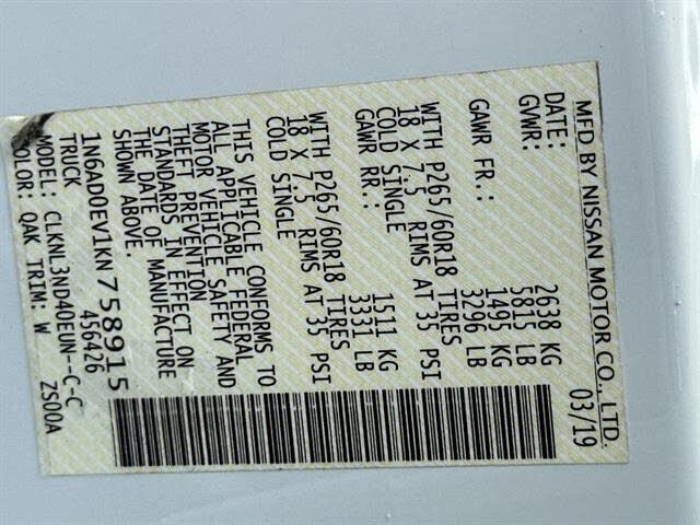 Experience rugged capability and premium comfort with this White 2019 Nissan Frontier SL 4x4 Crew Cab. Powered by a strong 4.0L V6 engine and 5-speed automatic transmission, this Frontier is ready for work or adventure. Enjoy features like leather-tr...