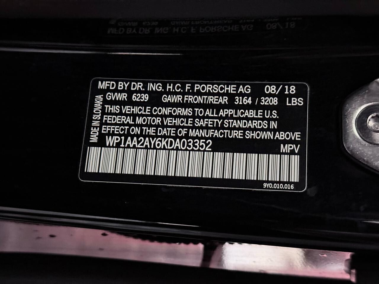 VIN WP1AA2AY6KDA03352 may have been