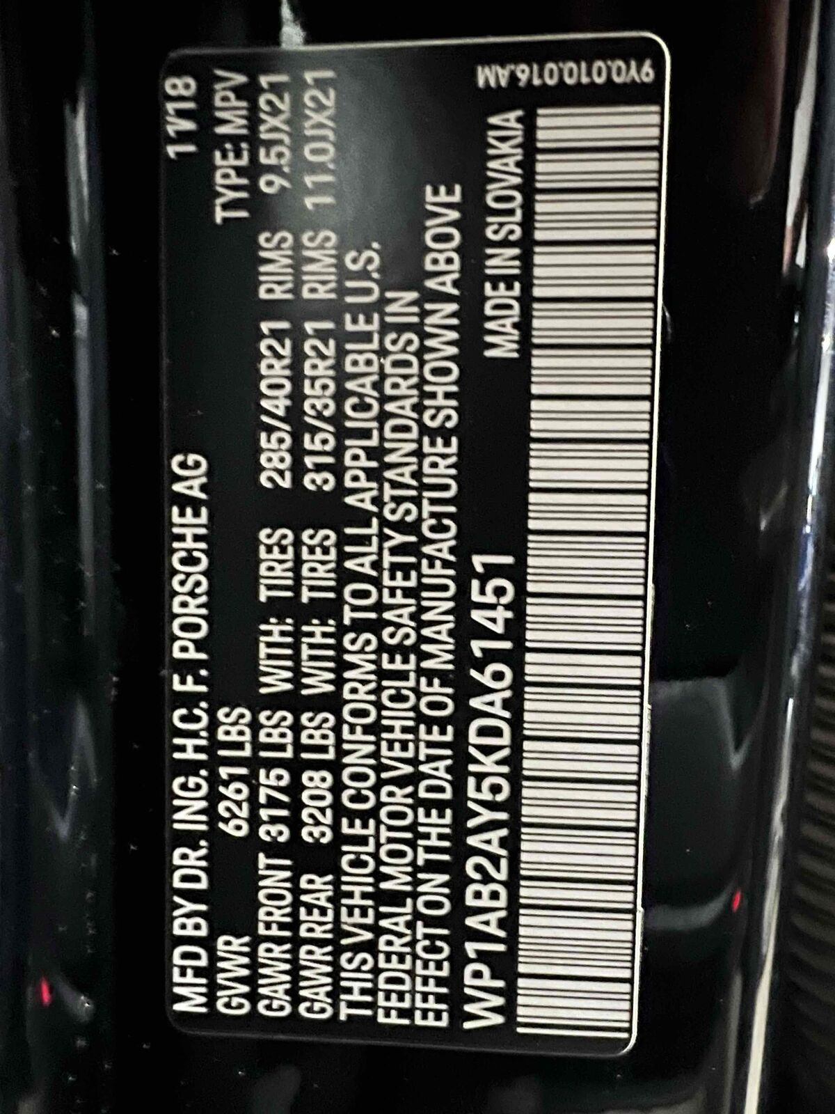 VIN WP1AB2AY5KDA61451 may have been