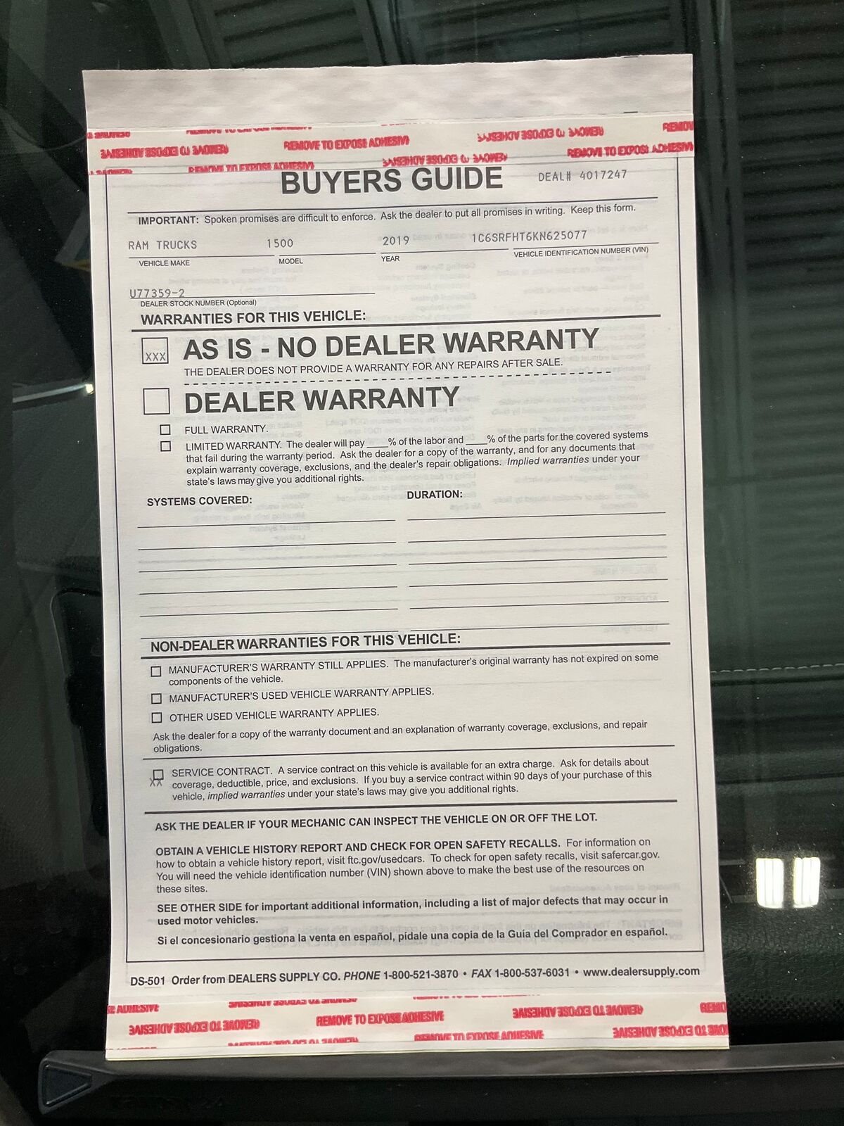 VIN 1C6SRFHT6KN625077 may have been
