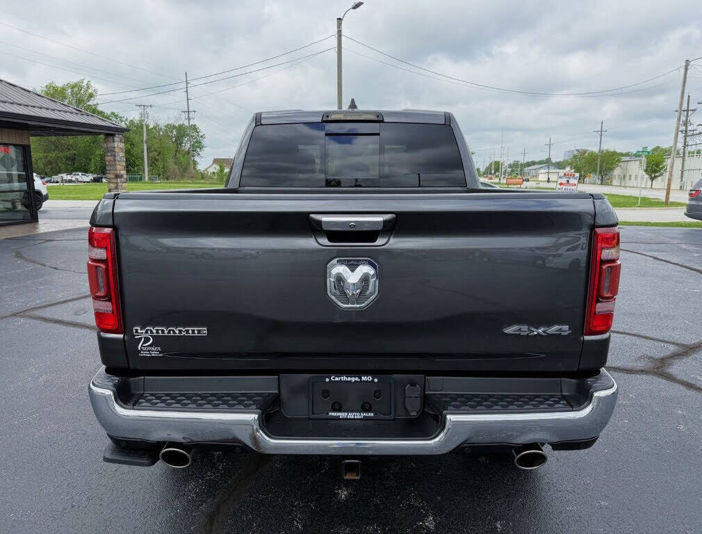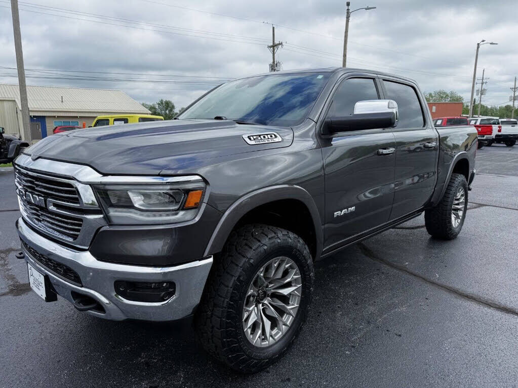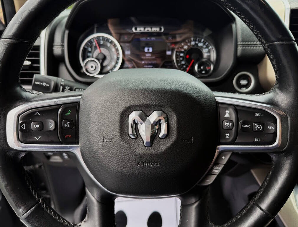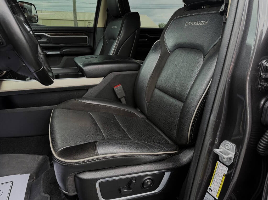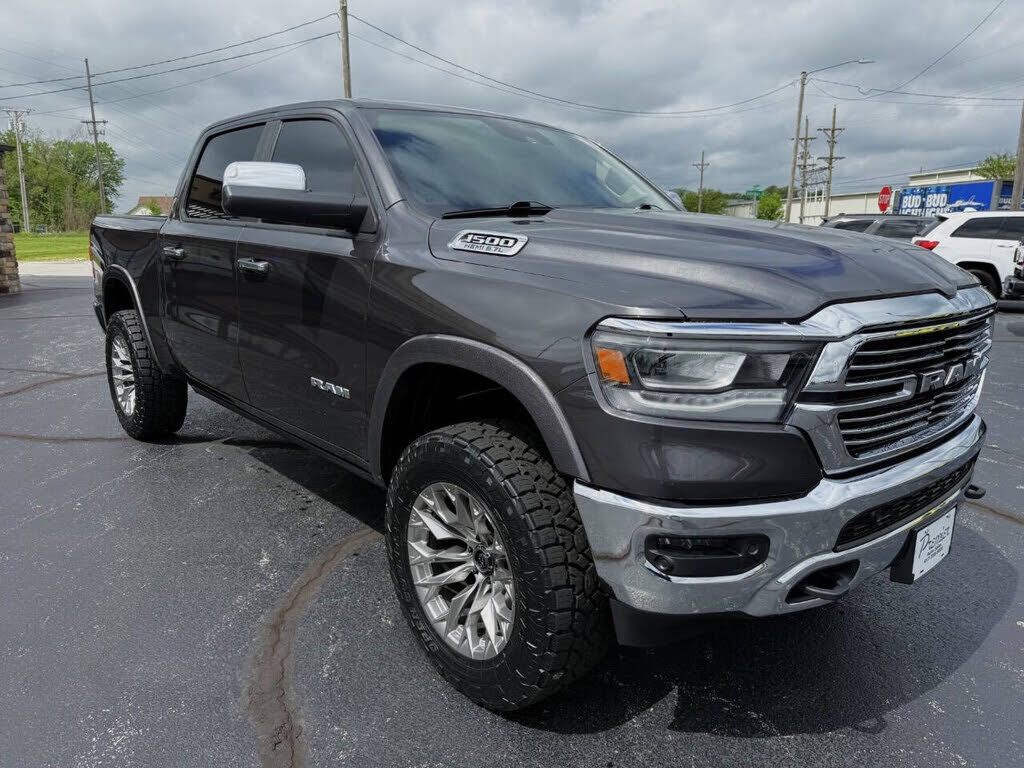 2019 RAM 1500 LARAMIE CREW CAB 4X4 5.7L HEMI 8-SPEED AUTOMATIC, ADAPTIVE CRUISE CONTROL W/ STOP & GO, AUTO DIMMING HIGH BEAMS, FULL SPEED FORWARD COLLISION WARNING PLUS, LANE DEPARTURE WARNING PLUS, PARALLEL & PERPENDICULAR PARK ASSIST W/ STOP, SURRO...