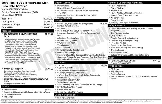 Discover the power and versatility of this 2019 Ram 1500 Big Horn/Lone Star. Boasting a commanding HEMI 5.7L V8 engine and 4-wheel drive, this truck is built to handle any terrain with ease. Equipped with an impressive array of advanced features, thi...