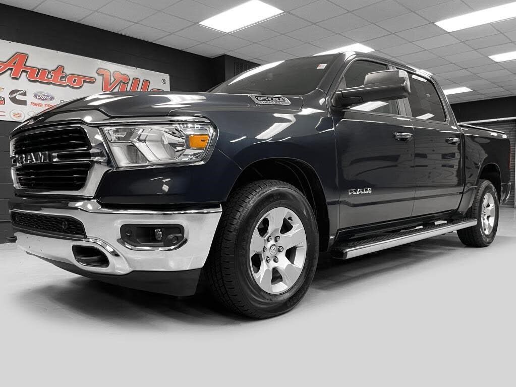395HP 5.7L Hemi V8, 4x4, Big Horn Package. Full Crew Cab, Bucket seats, streaming Bluetooth, back-up camera system, 8.4 inch touchscreen, Android auto, Apple Carplay, SiriusXM, 3.92 axle ratio, Skid plate package, Step bars, remote start, park assit,...