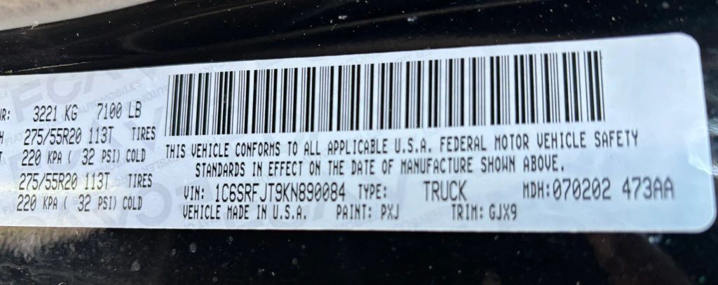 VIN 1C6SRFJT9KN890084 may have been