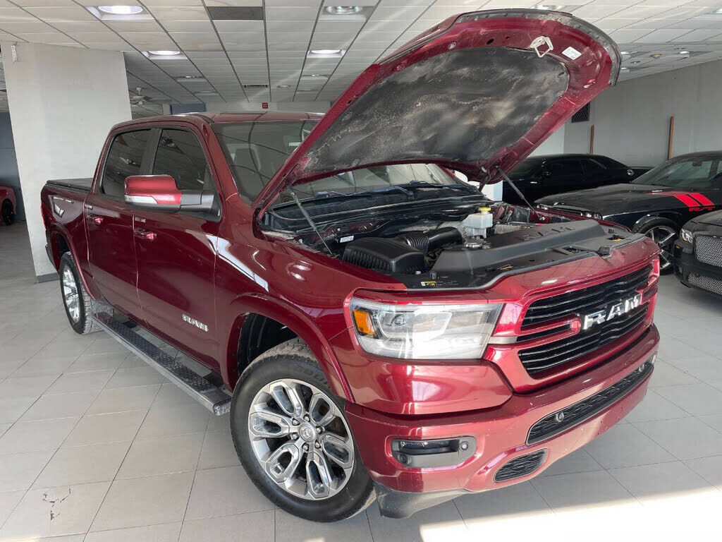 2019 RAM 1500 Laramie 5.7L V8 3 owner with a clean car-fax! Has premium alloy wheels, running boards, bed cover, towing package, sunroof, leather seats, power seats, vented seats, heated seats, heated steering wheel, cruise control, hands free phone...