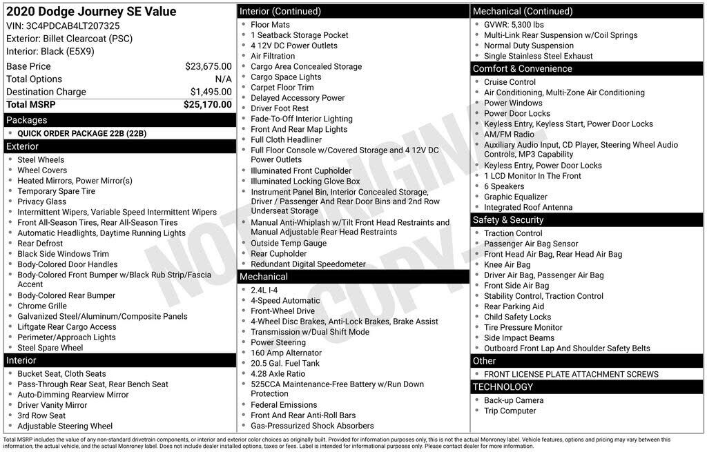 Recent Arrival! 2020 Billet Clearcoat Dodge Journey SE FWD This Dodge Journey has many features and is well equipped including. Thank you for taking the time to look at this handsome 2020 Dodge Journey. As you do your comparison shopping, you will...