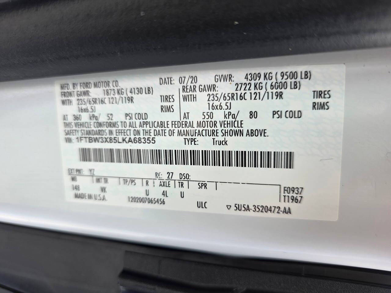 VIN 1FTBW3X85LKA68355 may have been