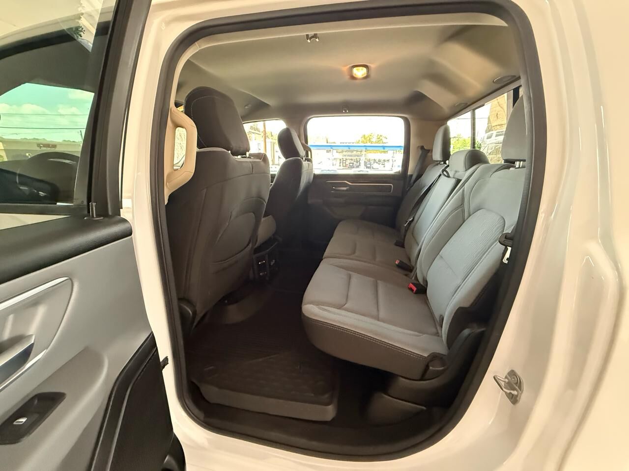 Hop into this sleek and stylish White 2020 RAM 1500 and get ready to go on an adventure! This powerful beauty comes with a 3.21 Rear Axle Ratio and has a GVWR of 3129 kgs (6900 lbs) making it the perfect companion for all your hauling needs. With Eng...