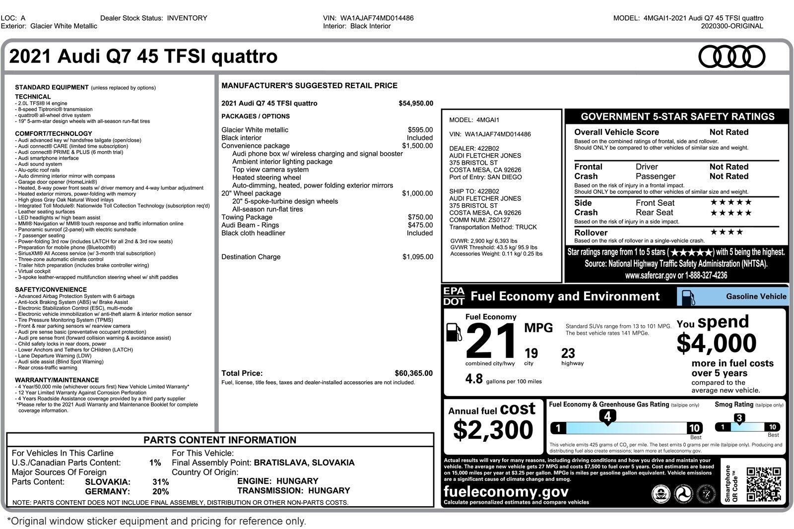*Audi Fletcher Jones does not reserve, or hold advertised vehicles, all are subject to prior sale on a first come first serve basis. Customer must take delivery of the vehicle and execute all California required documentation at Audi Fletcher Jones....