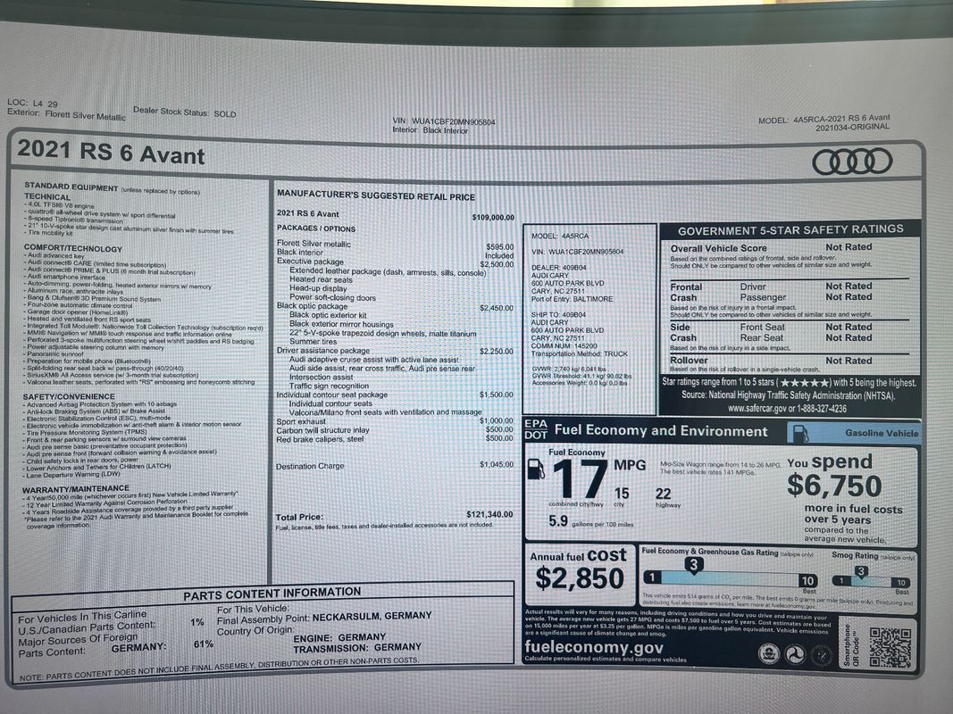 Volkswagen Group of America, Inc. (Audi) is recalling certain 2021 Audi A6 Allroad, Q7, RS6 and RS7 vehicles. The electrical connector can detach from the door crash sensor in either of the front doors.