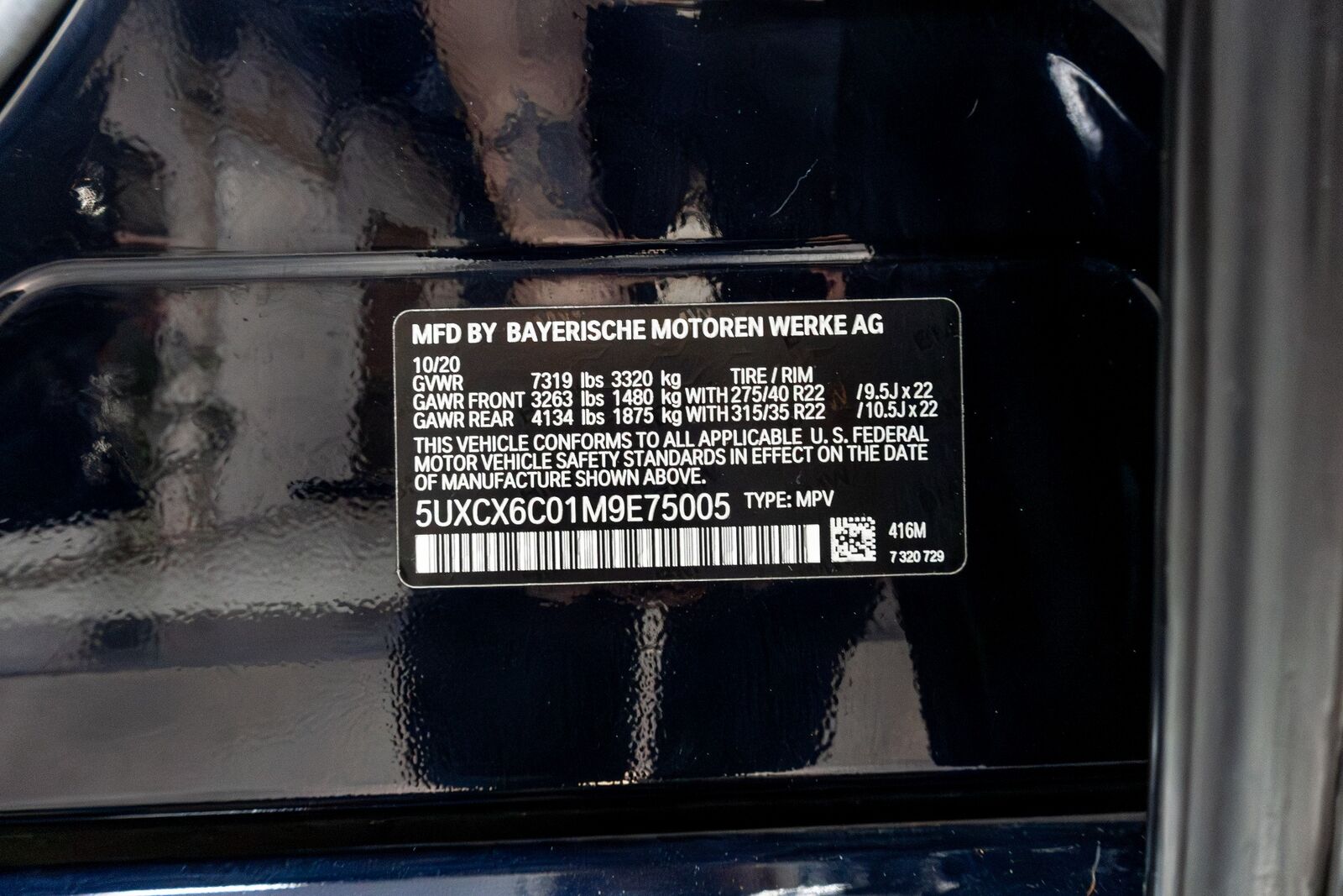 BMW of North America, LLC (BMW) is recalling certain X7 xDrive40i and M50i vehicles. The tire information labels may contain tire size and cold tire inflation pressure information that does not match the specific tires that were installed on these vehicles. As such, these vehicles fail to conform to Federal Motor Vehicle Safety Standard number 110, "Tire Selection and Rims."