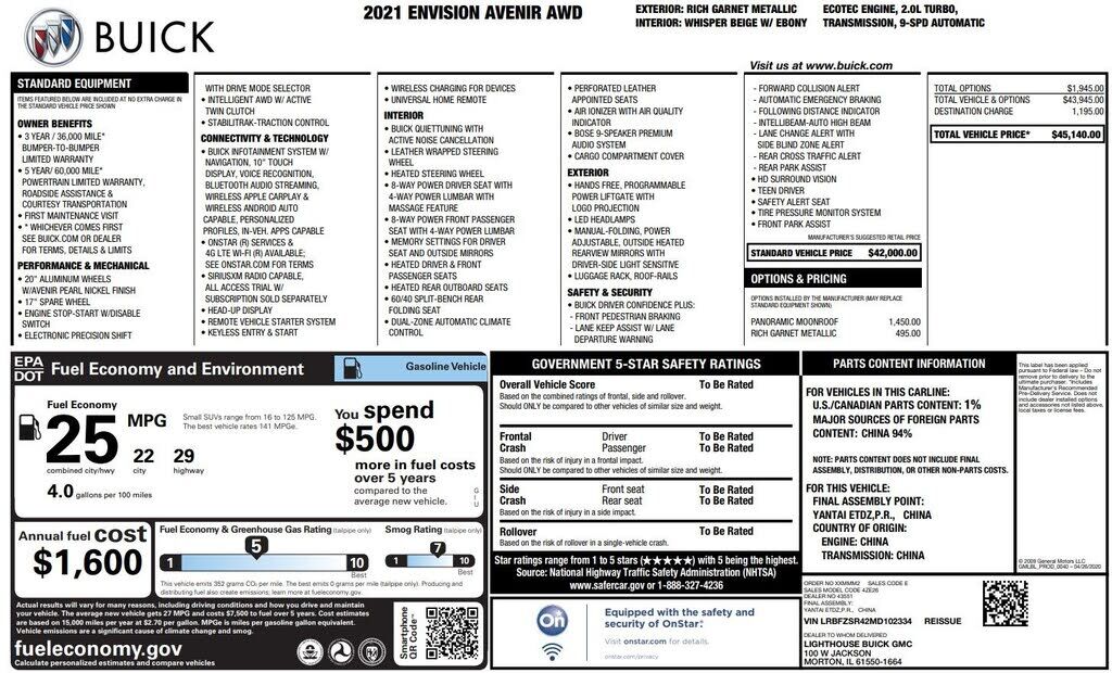 General Motors, LLC (GM) is recalling certain 2021 Buick Envision, Cadillac CT4, CT5, Escalade, Escalade ESV, Chevrolet Tahoe, Corvette, Suburban, GMC Yukon, Yukon XL vehicles. The communications gateway module incorrectly processes a loss of communication with the sensing diagnostic module (SDM), causing the air bag malfunction indicator light to inconsistently illuminate.